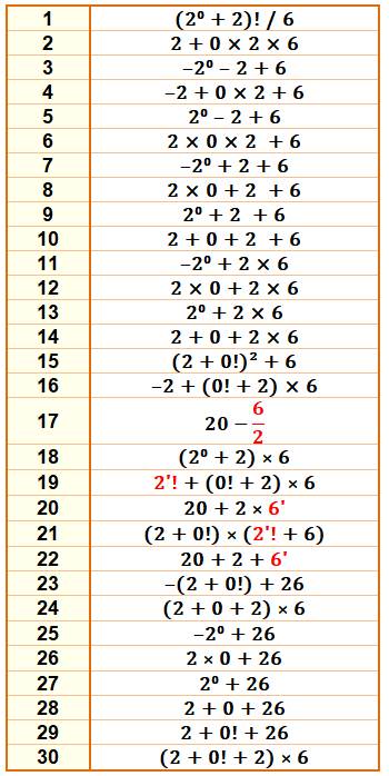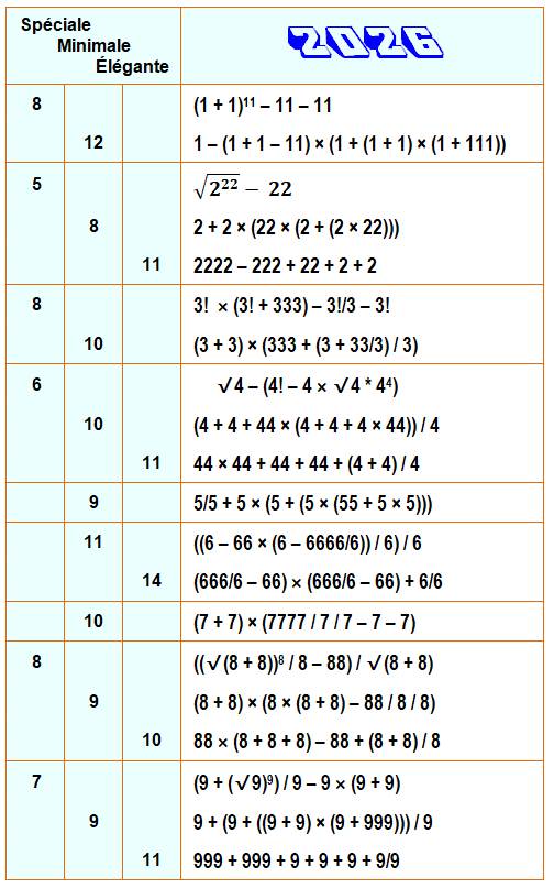 consiste à utiliser les quatre chiffres de 2026, dans l'ordre, combinés aux