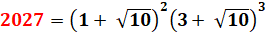 (a + √10)b (c + √10)d pour a, b, c, d de 1