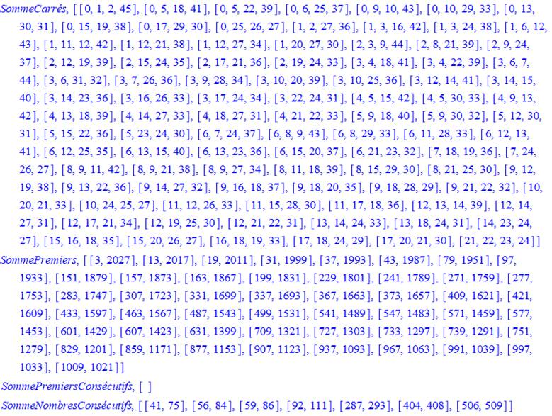 2 030 = 1² + 2² + 45² = 5² + 18² + 41² = ... = 25² + 26² + 27² |