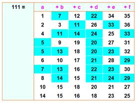 111 = 16 + 17 + … + 20 + 21 111 = 36 + 37 + 38 |