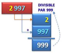 exemple: 2 997 est divisible par 999 et par tous ses diviseurs: 1, 3, 9, 27, 37,