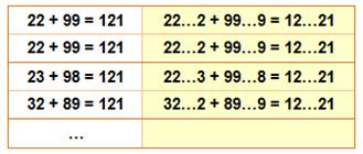 = 11² et 1 + 2 + 1 = 4 = 2² 121