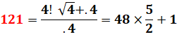 = 1 + 2 x 3 x 4 x 5 = 5! + 1 |