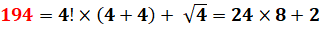 194 = 52 + 132 = (12 + 12)(42