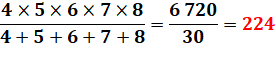 224 / (2 + 2 + 4) = 28 224 / (2 x 2 x 4) = 14 |