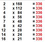 336 = 6 × 7 × 8 = 14 (2 × 3 × 4) |