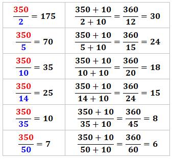 Le plus petit cas pour six. Diviseurs de 350 Suite