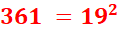 361 = 19² 3 + 6 + 1 = 1 + 9 = 10 |