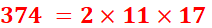 374 / 34 = 11 |