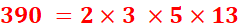 390 = 2 x 3 x 5 x 13 |