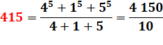 415 + 514 = 929 415 – 514 = 99 415 + (5×1×4) = 435 = T29 |