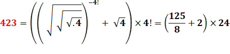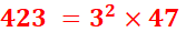 423 = 3² × 47 424 = 2² × 106 425 = 5² × 17 |