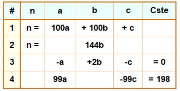 qui donne: 33a = 132 => a = 4. Système d'équations pour information
