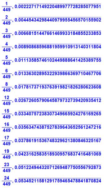 La division par 449 des nombres de 1 à 448 produit quatorze