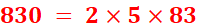 830 = 2 x 5 x 83
