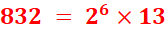 832 = 416 + 208 + 104 + 64 + 32 + 8