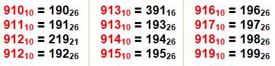 Exactement les mêmes chiffres en base b pour tous les nombres en 910.