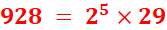 928 = 464 + 232 + 116 + 58 + 32 + 16 + 8 + 2