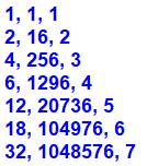 324 = 1 048 576 384 = 2 085 136 444 = 3 748 096 484 = 5 308 416 494 = 5 764 801 |