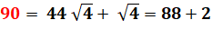 90 = (20+2) + (20–2) + (20x2) + (20/2) |