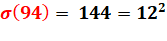 la somme des diviseurs est un carré. Liste: 1, 3, 22, 66, 70, 81, 94, 115