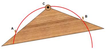 conservant le contact avec les points A et B, le crayon en C dessine l'arc de