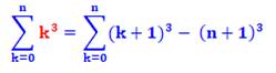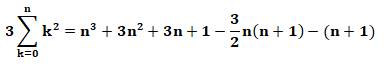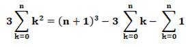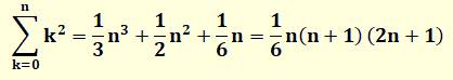 Bilan: 1 + 4 + 9 + 16 + 25 + 36 = 6 x 7 x 13 / 6 = 91 |