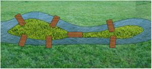 jardinier ou du maçon qui n'a pas accès au centre du cercle). Cet outillage permet de construire l'arc de