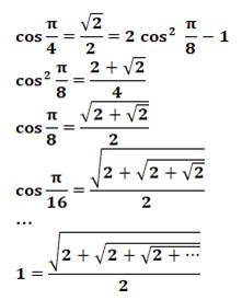 On part de la valeur du cosinus de Pi/4 et application de la formule