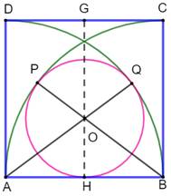 à un côté du carré. Solution Soit la tangente en P au cercle rose et au cercle