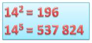 chiffres de 1 à 9, une seule fois avec ces deux puissances de 14.