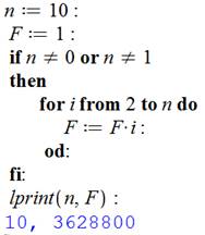 chaine et calcule tous les produits. Ici 6! = 720 |