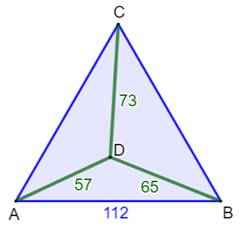 un point D interne dont les distances aux trois sommets sont des nombres