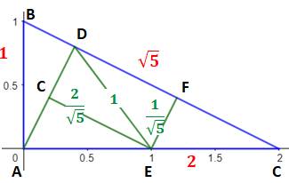 Triangle rectangle ABC partagé en 5