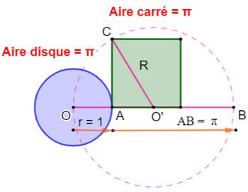 que AB = Pi . Milieu O' de AB. Cercle (O',