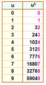= 10B + u5 Or les chiffres à la puissance 5 se retrouvent en