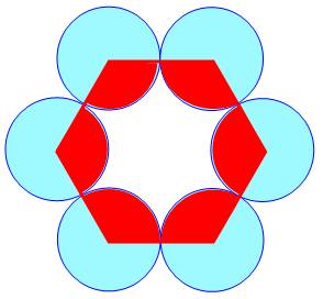 sommet et de rayon moitié du côté de l'hexagone. Curieusement, la différence d'aires entre la zone