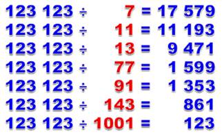 établir que: Tous les nombres en par 7, 11, 13, 77, 91, 143 et 1001. La barre indique qu'il faut lire un nombre en