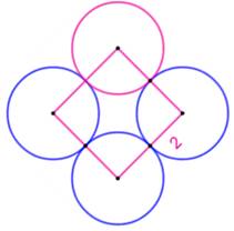 extrémités d'un diamètre du cercle central. Quelle est l'aire de la zone rose ? Piste Construire quatre triangles équilatéraux et évaluer l'aire du disque