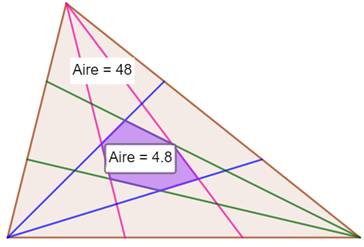 trisectrices d'un triangle délimitent un hexagone interne dont l'aire est