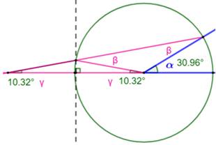 L'angle gamma vaut le tiers de l'angle alpha. |
