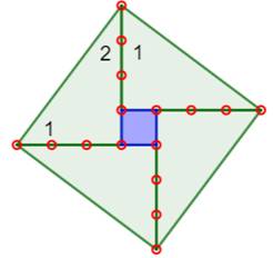 des angles par 4, on obtient un hexagone dont l'aire vaut 8/35 fois celle du