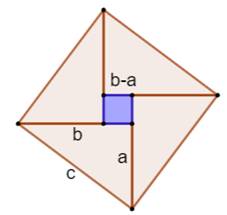 Alors, le quadrilatère vert est un carré. Un carré de côté unité est formé au centre. Calculs Aire du grand carré: 4T + 1C = 4 × (1/2×3×4) + 1 = 25 Son côté mesure: √25 = 5 Théorème de Pythagore On retrouve de théorème pour un cas particulier: Mais, celui-ci peut être généralisé en prenant a,