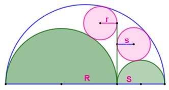 Construction Trois demi-cercles en forme d'arbelos Deux petits cercles tangents à deux demi-cercles