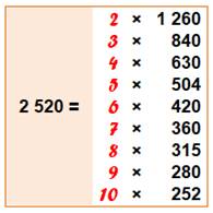 Nombre 2520 2 520 = 23 × 32 × 5 × 7