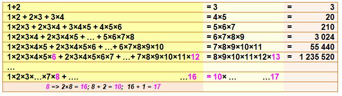 2 520 = 8! / 4² = 8! / (2 × 2!)² = 8! / 24 = 9! / 12² = 9! / (2 × 3!)² = (2+2+2+2)! / (2!×2!×2!×2!) |