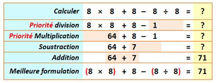 C'est finalement très simple. Règle de priorité des calculs Dans l'ordre décroissant: