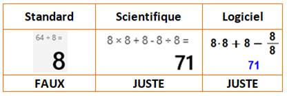 les logiciels, donne le résultat juste. En mode standard, le calcul est