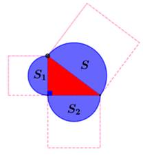 les triangles équilatéraux, comme pour tout polygone régulier. Avec des demi-cercles Cette relation entre les aires reste valable pour