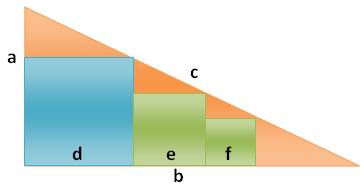 droit et dont un sommet est situé sur l'hypoténuse du triangle. Quelle est la longueur du côté du carré bleu d ? Formule